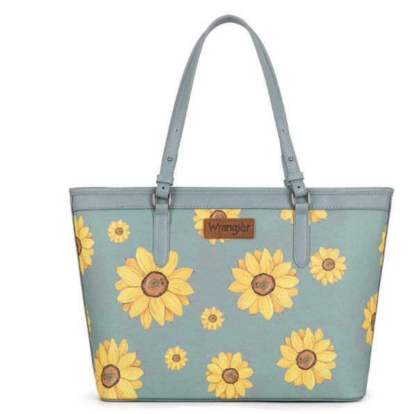 Brighten up your day with the charming Wrangler Sunflower Tote Bag, available in soft teal and classic black. Featuring vibrant sunflower prints that radiate positivity, this spacious tote blends casual Western flair with practical design. The sturdy straps and roomy interior make it perfect for daily errands, work, or weekend adventures. Whether you pair it with denim for a laid-back look or a sundress for a touch of country chic, this bag is your go-to accessory for adding sunshine to any outfit.